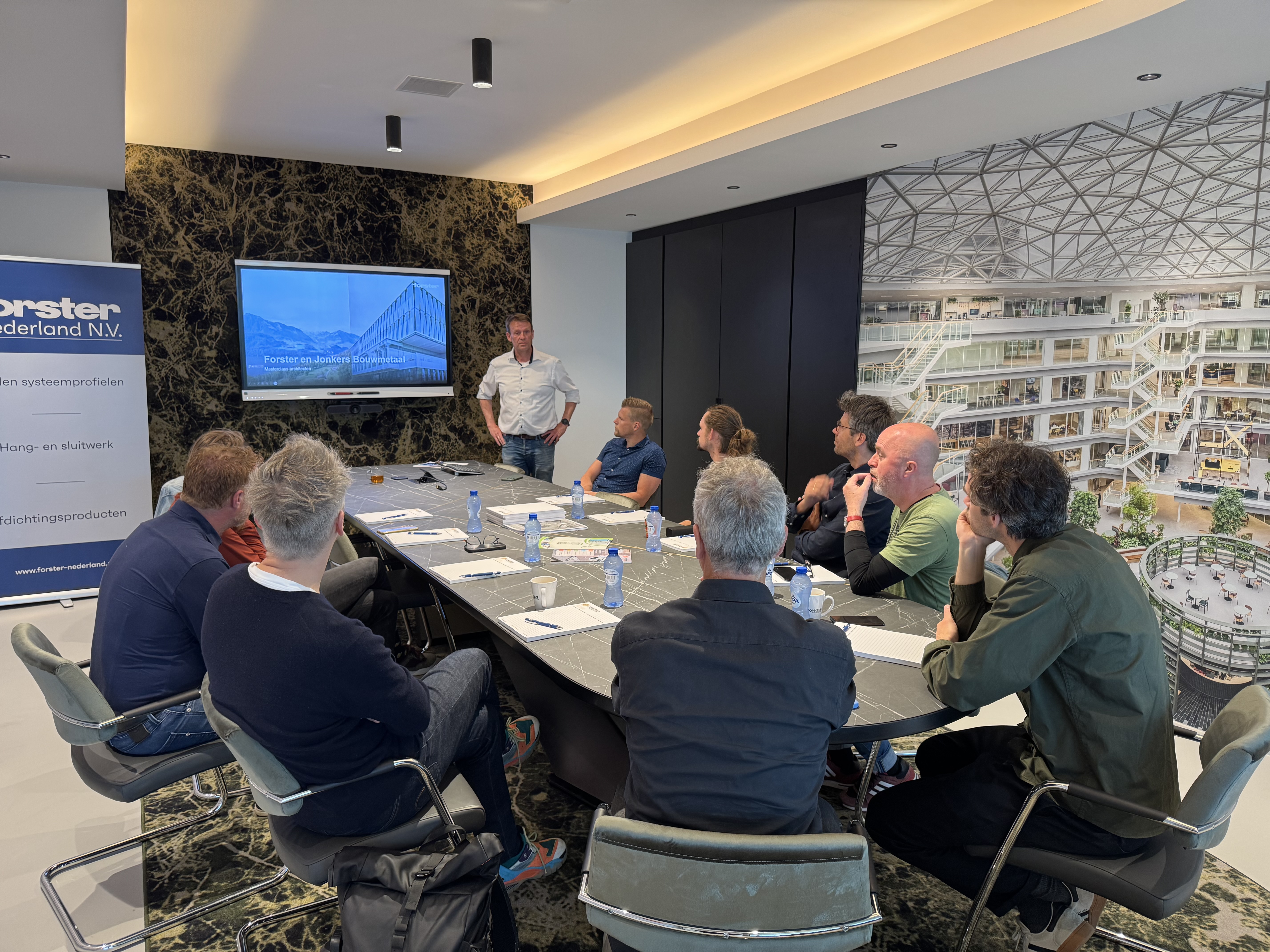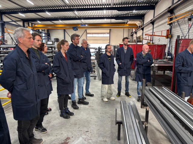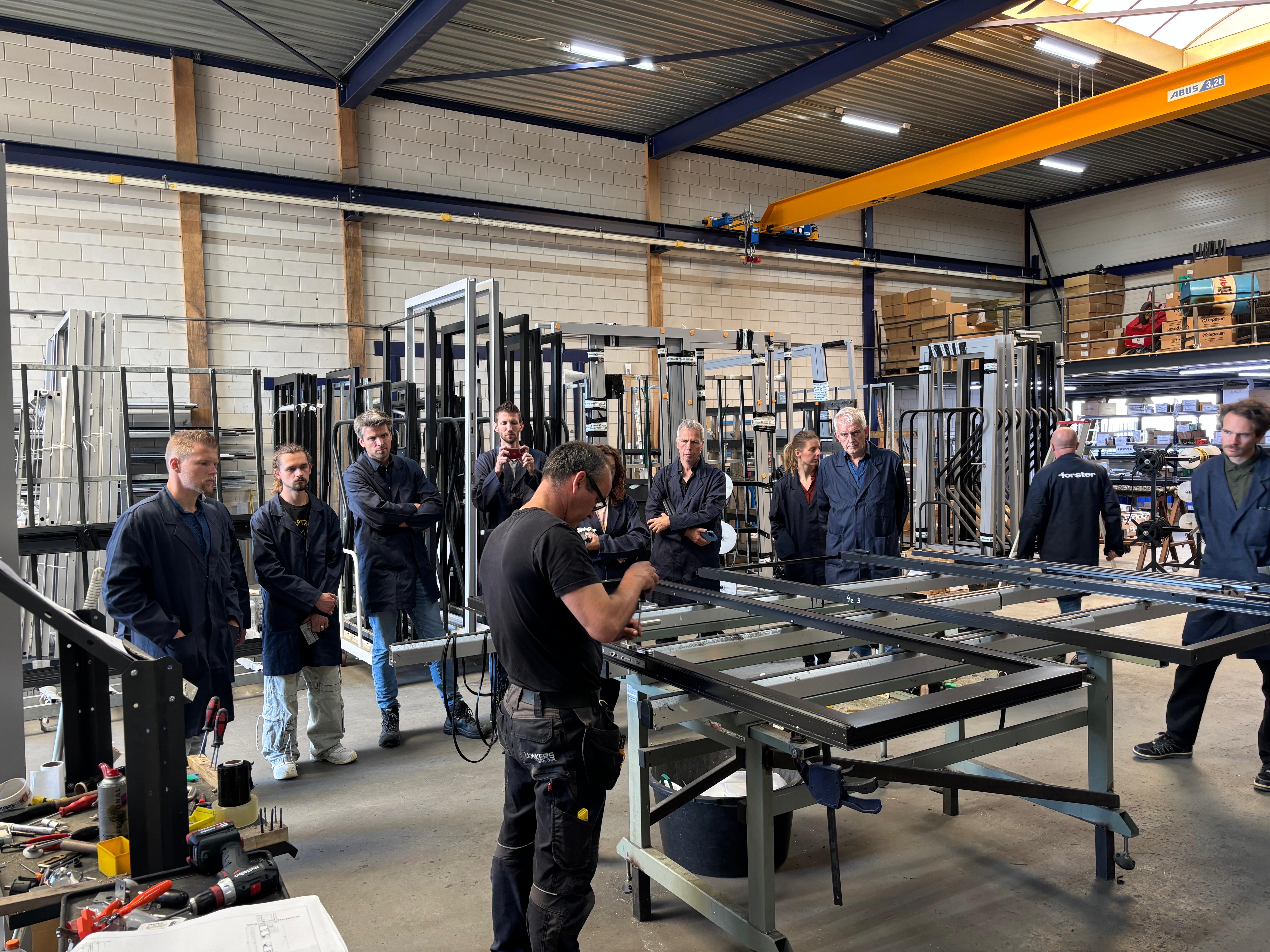 Op 20 mei hebben we onze eerste architecten masterclass gegeven bij onze verwerker Jonkers Bouwmetaal. Samen met Maarten Jonkers heeft Patrick Erven de architecten eerst voorzien van wat technische informatie over het Forster staal en de verwerking ervan, waarnaar Maarten ons de productie mee in heeft genomen om te zien hoe je van het afgeleverde profiel naar een deur of raam gaat - zagen, frezen, lassen, het rubber erin zetten en het hang- en sluitwerk erop monteren. Een ontzettend interessante en leerzame ochtend was het voor iedereen!