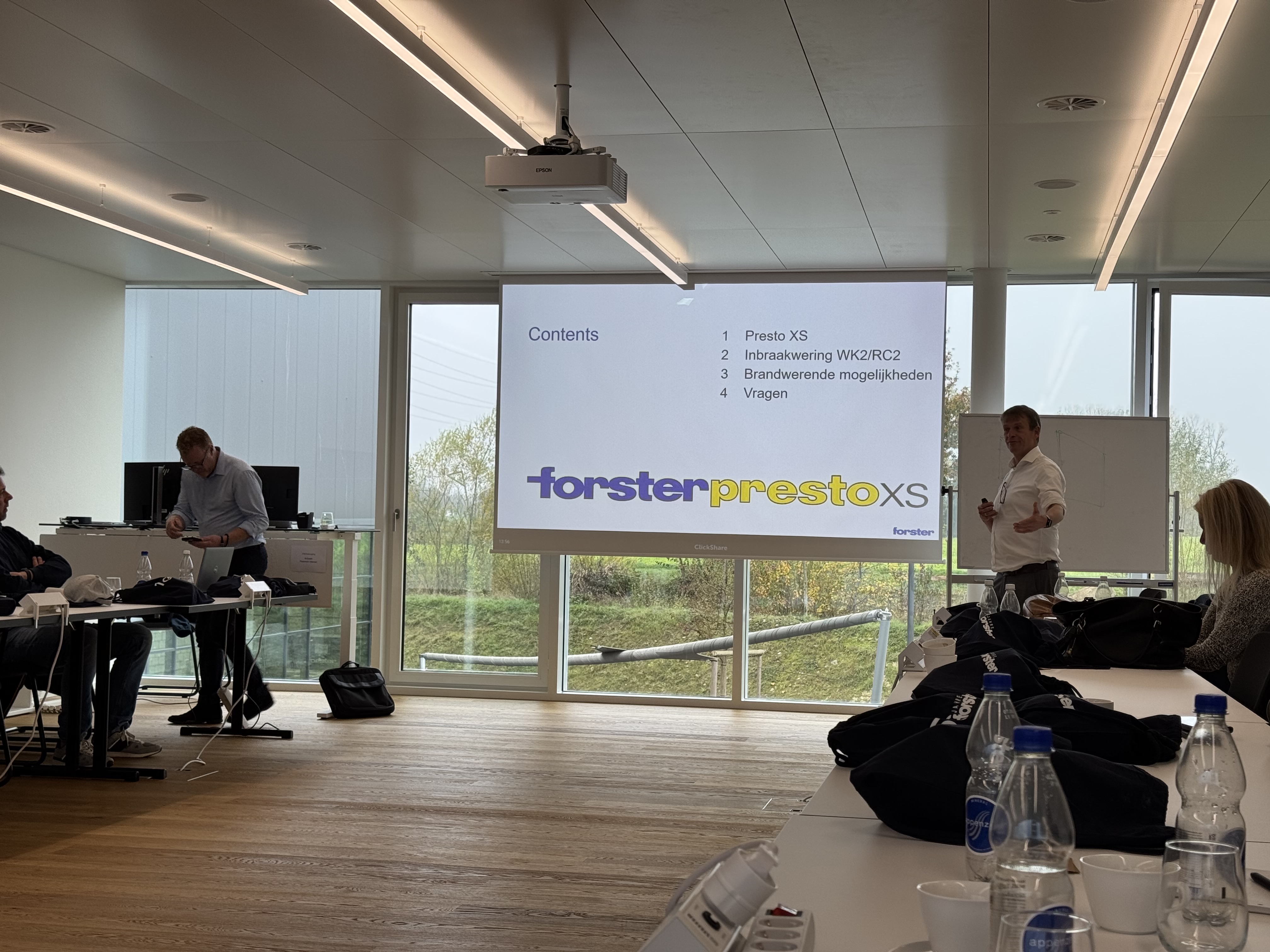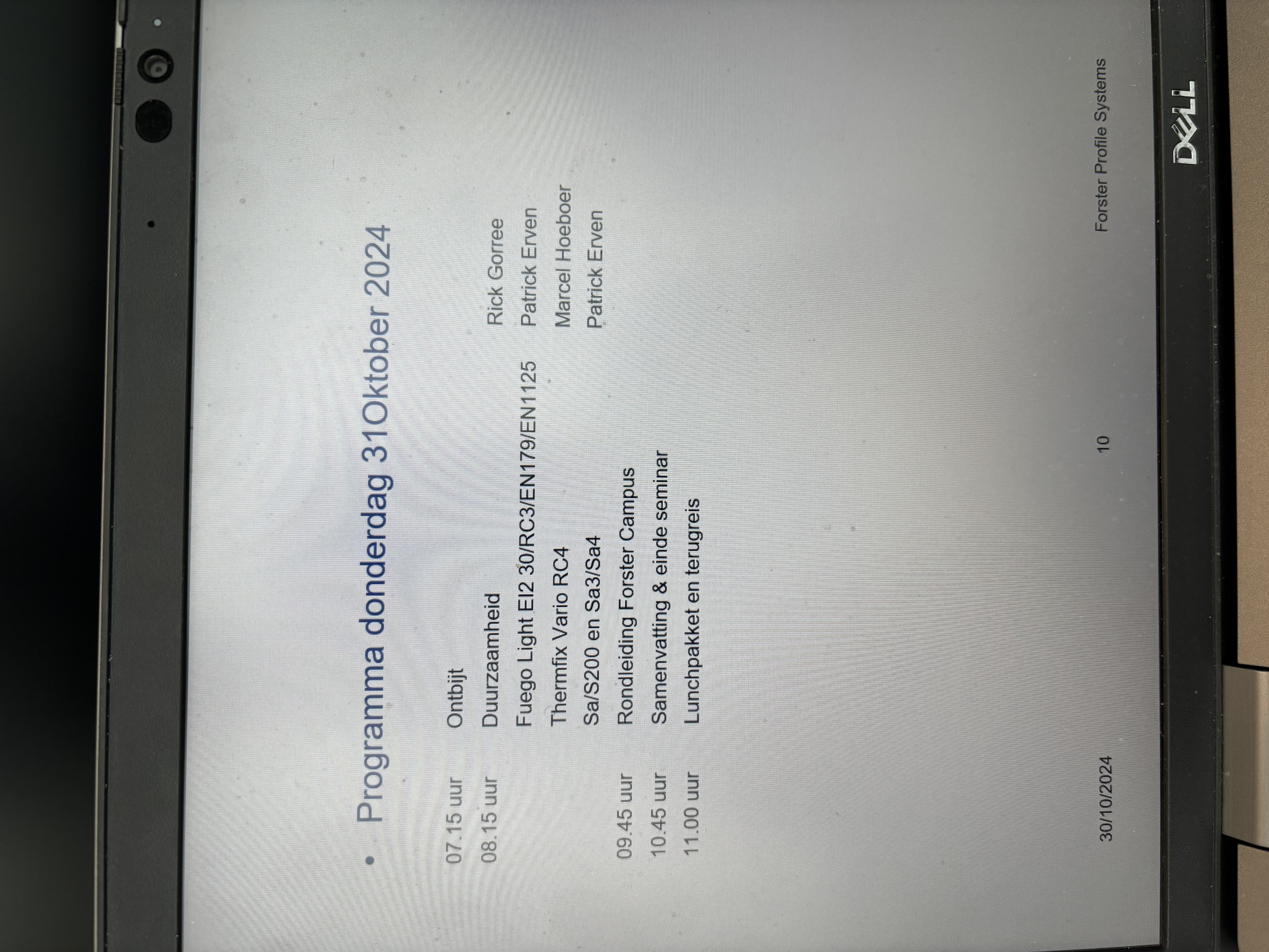 Op woensdag 30 oktober zijn we, na een vroeg ontbijt, de auto ingestapt om naar de Forster Campus te rijden. Hier hebben de aanwezigen de hele dag geluisterd naar verschillende seminars met onderwerpen als low-carbon steel, inbraakwerende oplossingen, brandwerende oplossingen, de duurzaamheidsinitiatieven die aanwezig zijn op de Forster Campus.