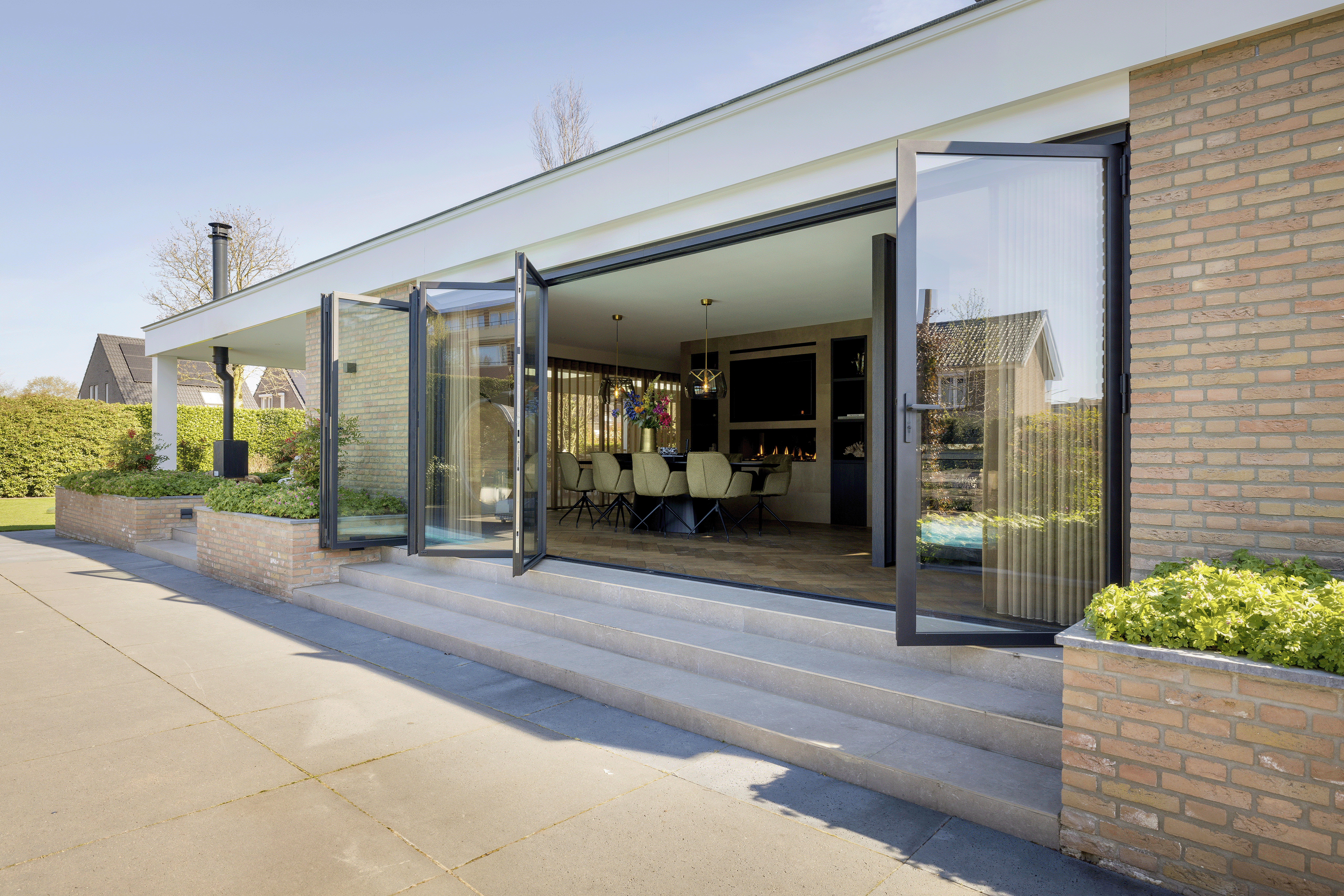 Voor de architect vormt de schuif-vouwwand een instrument om ruimtes open en licht te maken, en bewoners of gebruikers de vrijheid te geven hun omgeving telkens opnieuw te configureren. Het resultaat is een dynamische leefomgeving die inspeelt op seizoenen, dagritme en gebruik