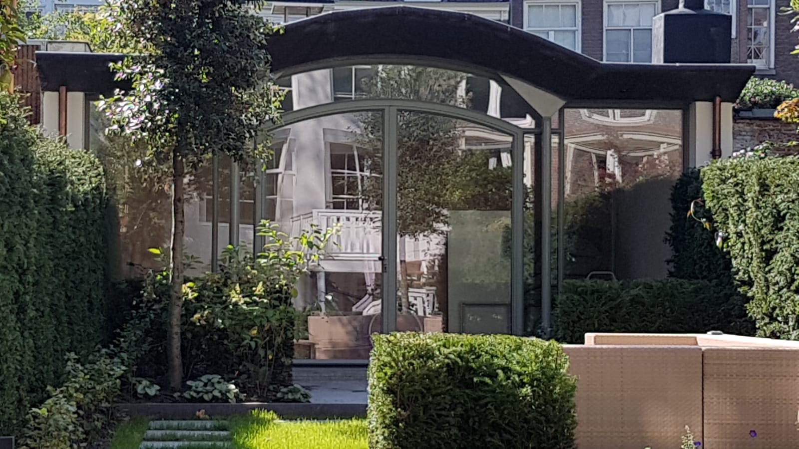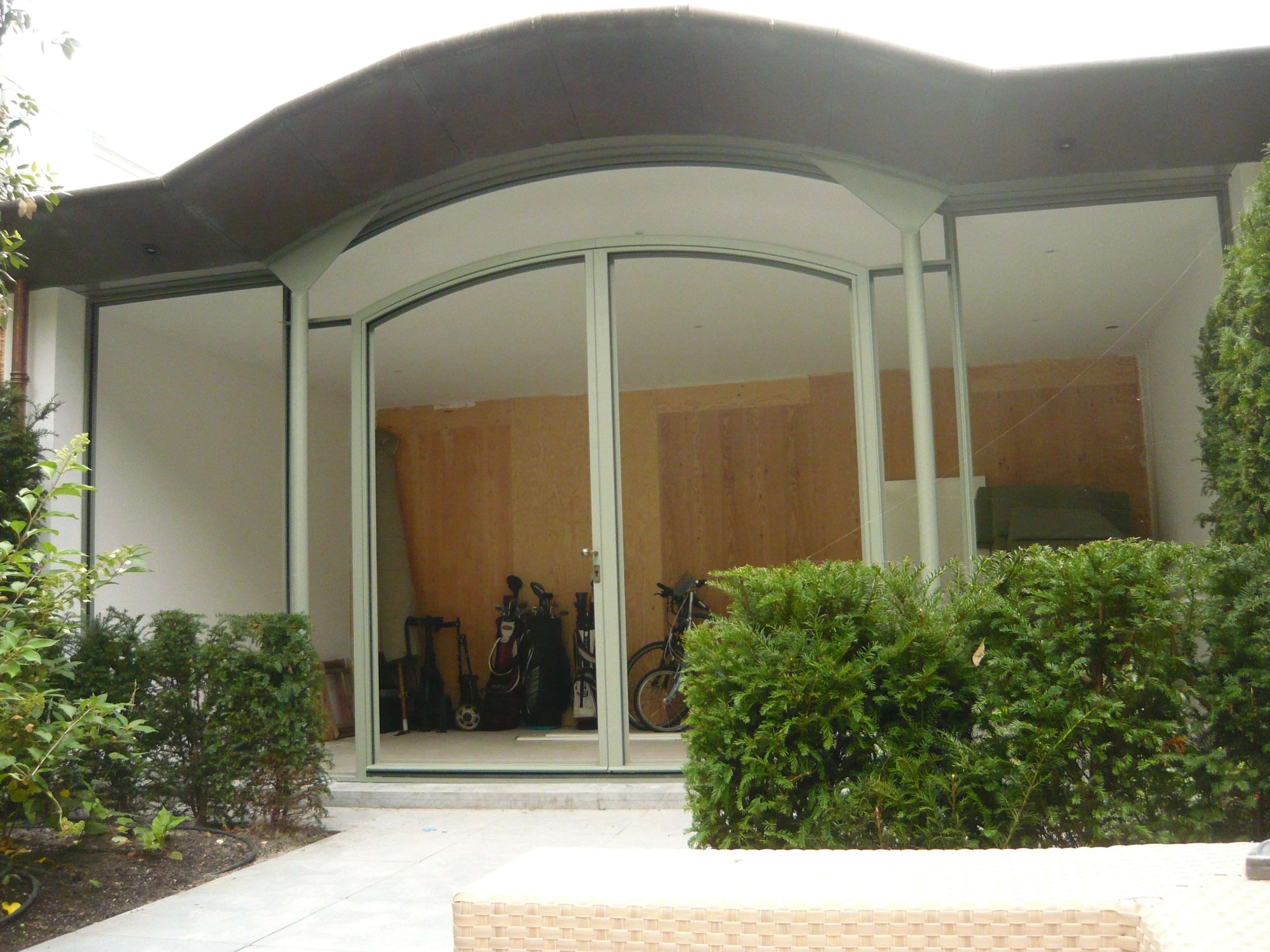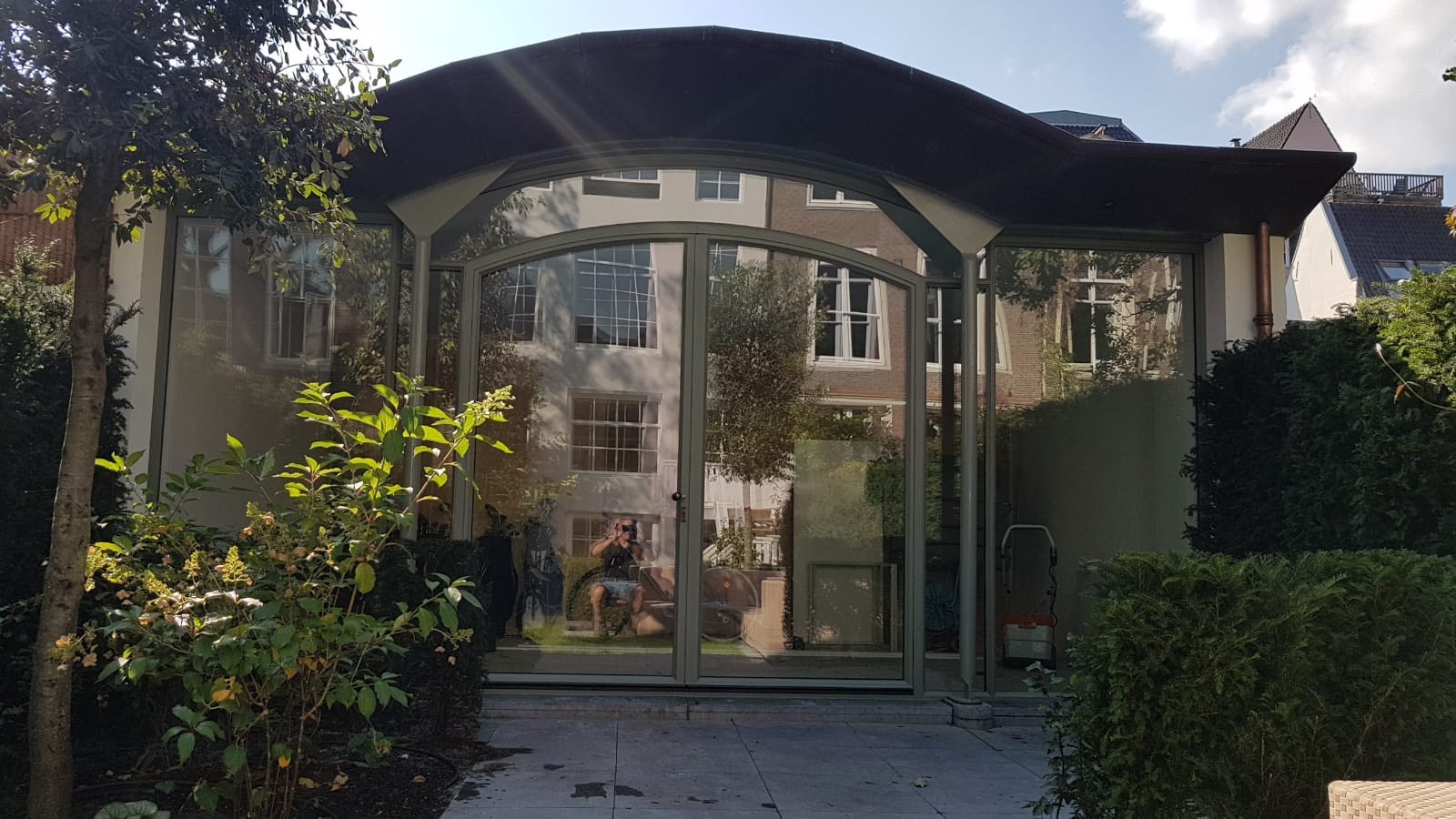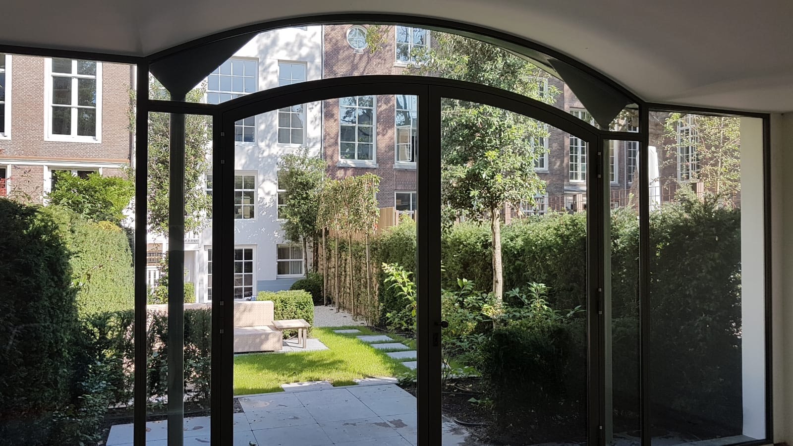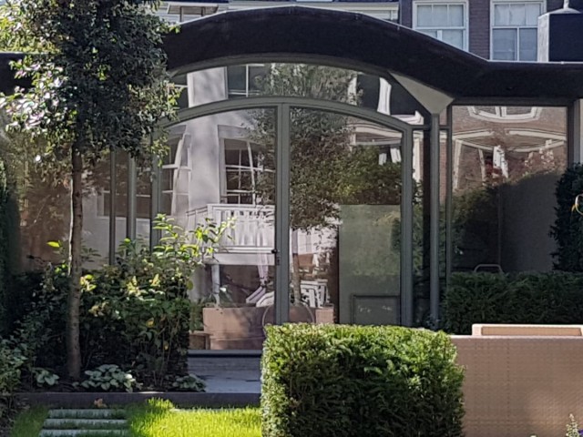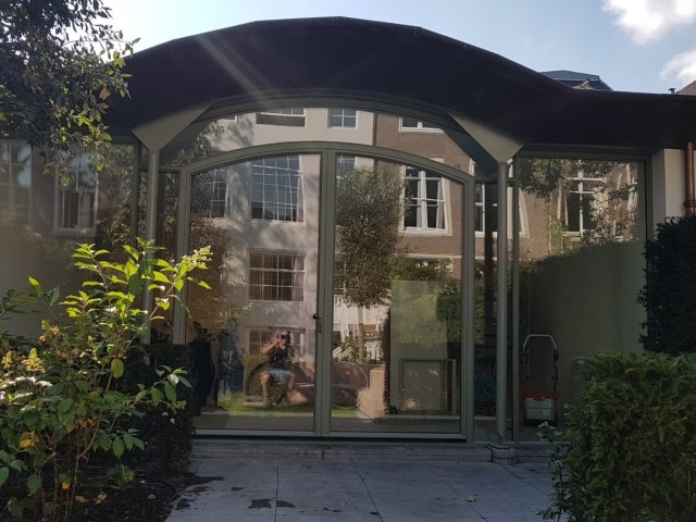 Een voorbeeld hiervan is deze prachtige pui gemaakt van Forster Unico XS profielen. Het bovenligt van de pui is gebogen waardoor de pui een luxe uitstraling krijgt.